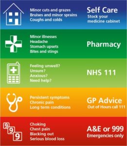 • Visit Urgent Treatment Centres if you have injured yourself within 72 hours, or need help for a minor illness.